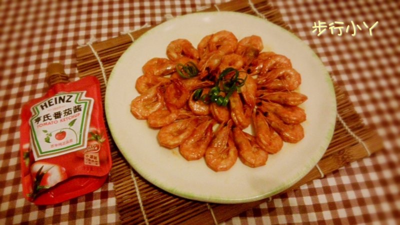 鲜虾适量;亨氏番茄酱适量;