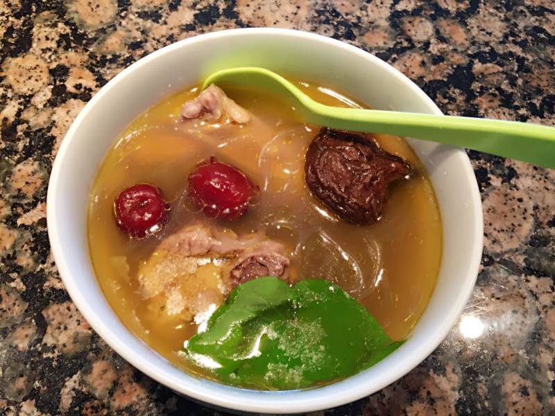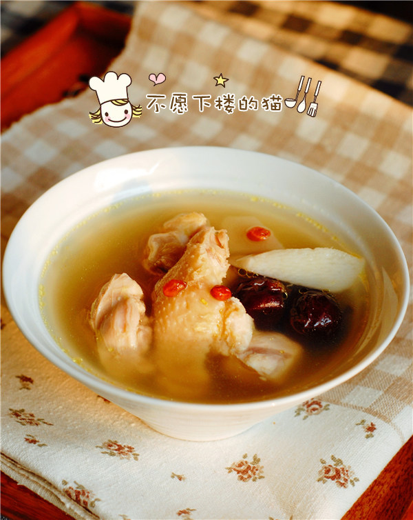 8:鲜香美味的山药红枣土鸡汤就炖好了,汤鲜味美,营养丰富。