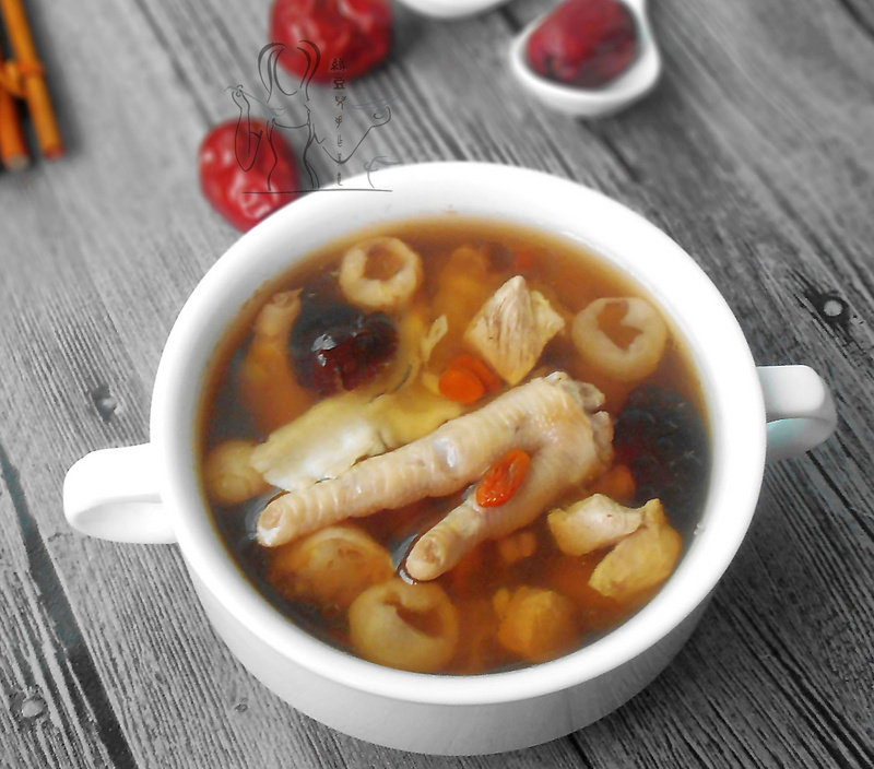 当归3克;红枣4颗;桂圆6颗;枸杞适量;姜2片;盐适量;