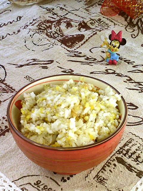 3:30分钟米饭熟啦!拌入20g生抽,香油拌匀即可开吃啦!