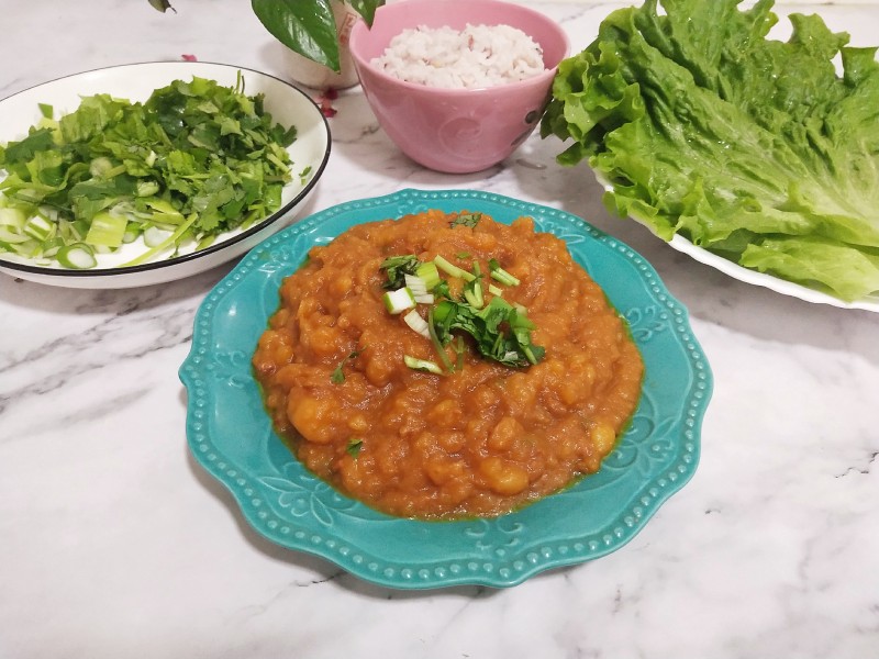 12:包上生菜叶吃(或者生菜叶也一起撕小块拌到酱饭中)。
