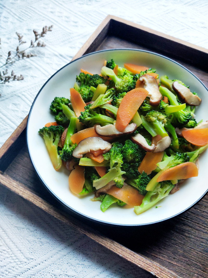 西兰花1棵;新鲜香菇3个;胡萝卜半个;