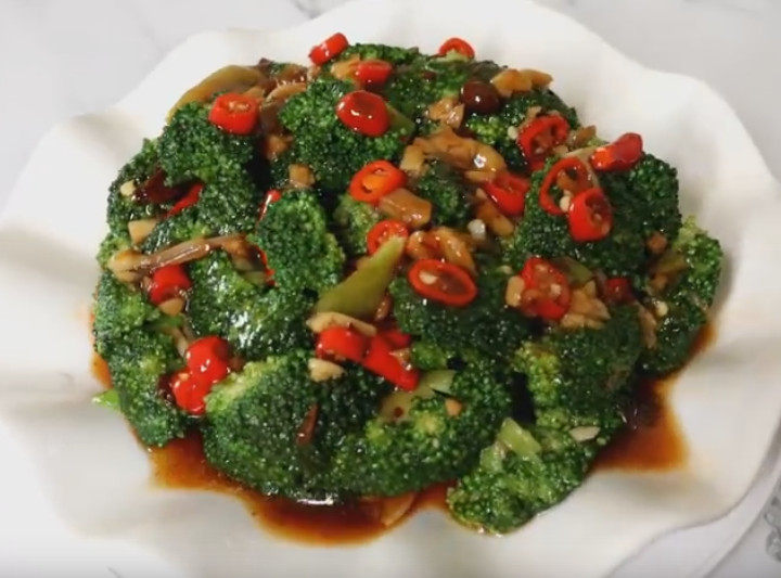5:将汁淋在西兰花上,拌匀即可上桌。