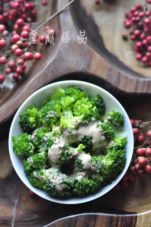 5:水开后,入西兰花焯熟,盛起过凉开水后,拌上调味汁即可开吃