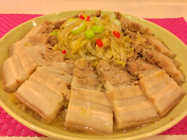 7:煮至粉丝变软即可关火,酸菜汆白肉就做好了,酸菜开胃,白肉香而不腻,超级解馋。
