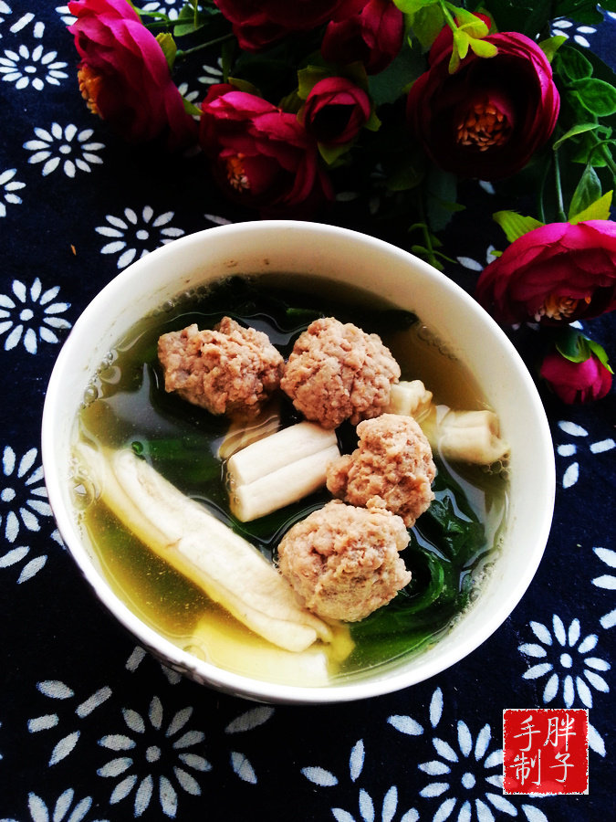 牛骨髓100g;肉馅200g;菠菜150g;葱5g;姜2g;