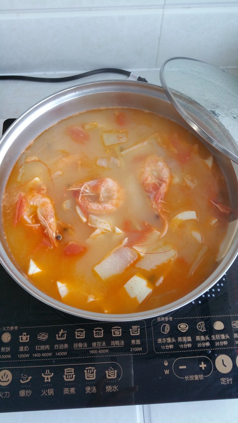 4:加入沒过材料的水,开锅后下浓汤宝,虾。大火滚开后小火熬至冬瓜软烂,下盐就可以出锅啦。