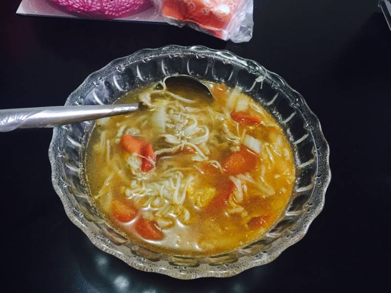 5:水烧开后加入金针菇和娃娃菜,大火煮开