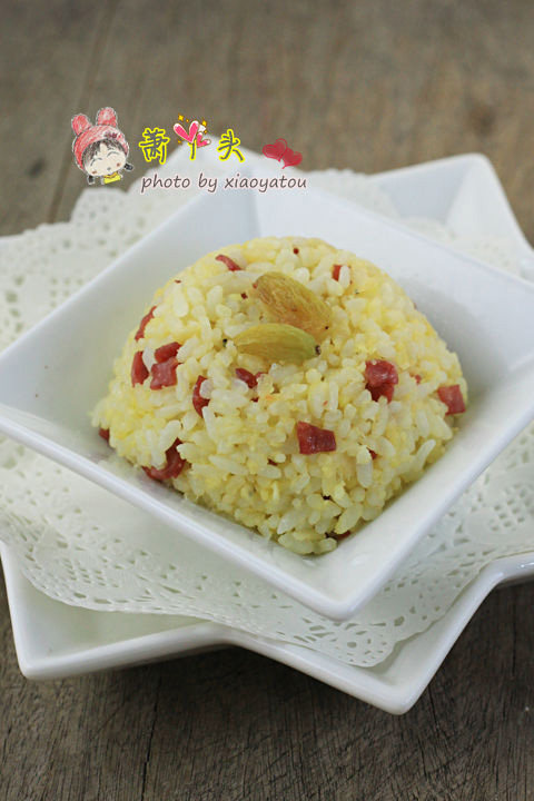 米饭150g;肉末50g;玉米粒70g;火腿肠25g;香葱一根;