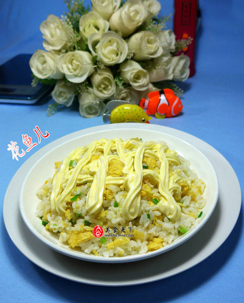 剩饭适量;沙拉酱2匙;鸡蛋1个;