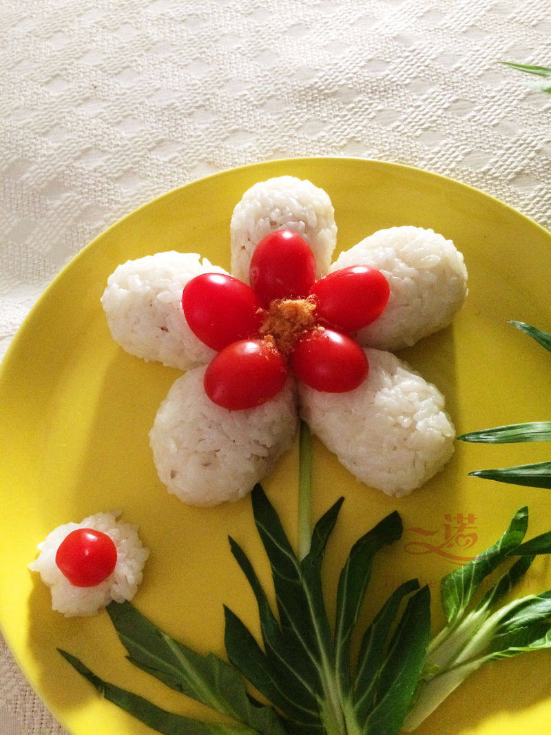 1:准备食材剩米饭、丘比沙拉酱、肉松、圣女果