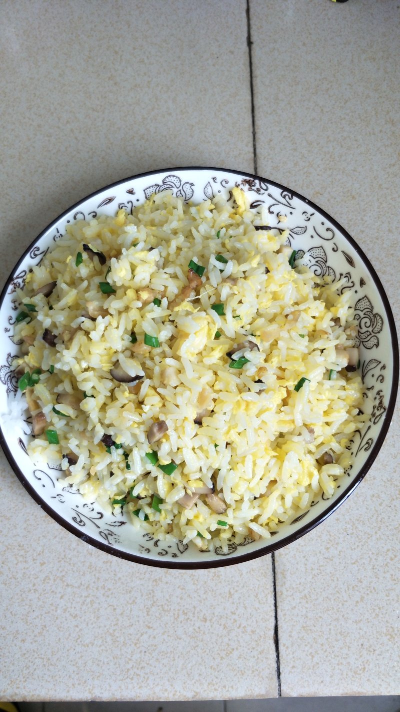 1:香菇萝卜干切丁鸡蛋两个搅拌好米饭一盘。