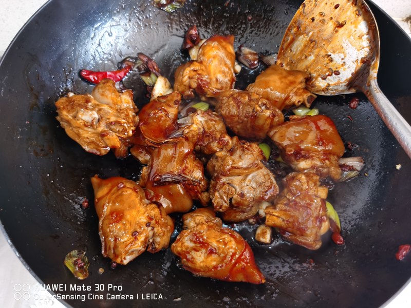 5:放猪蹄翻炒上色,捞起备用。