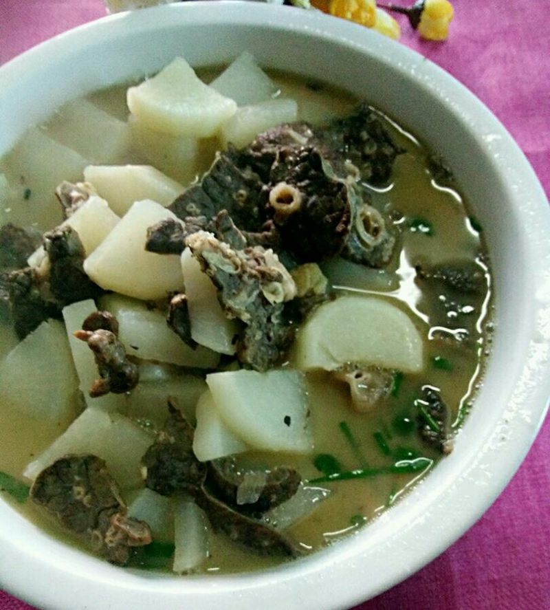 11:水开后放入萝卜,萝卜煮熟后放盐味精就可以了,这样处理好的心肺炖的汤白白的,而且嚼着有嚼劲不会有一点绵绵的感觉,用水绰的会有一点绵绵的口感