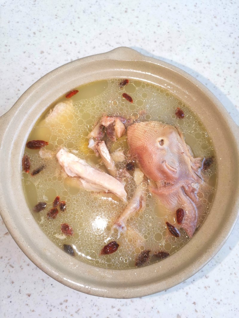 3:加水,炖一个小时,即可。枸杞和姜,在汤好之后放,大约再炖个十分钟即可