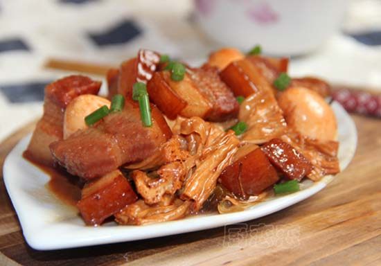 16:因为是新鲜的竹笋容易熟;和五花肉一同煸炒入味后,撒胡椒粉炒匀即可关火出锅。如果觉得红烧过于清淡;口味较重;需要五花肉和竹笋的味道更加渗透入味,可以盛入到砂锅中;加入3杯水继续炖煮2到3小时。【这种炖煮的方法红烧干竹笋也会很好吃的,没有新鲜的竹笋;干竹笋会有同样的效果】炖煮出来的笋香和肉香的味道会更加醇厚。