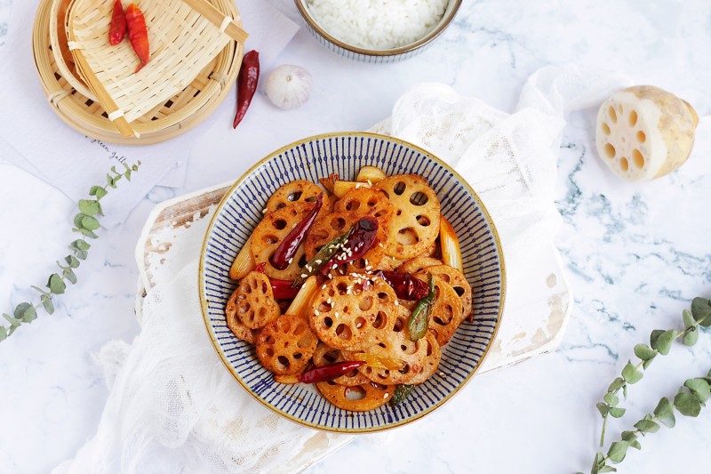 7:超下饭的干锅藕片就完成了。