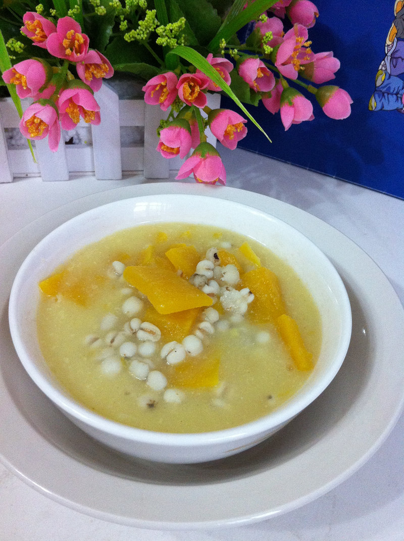 7:加入剩下的南瓜块拌匀即可。可以加盐或糖调味。我觉得南瓜和玉米的原味就很好了~~~~~~
