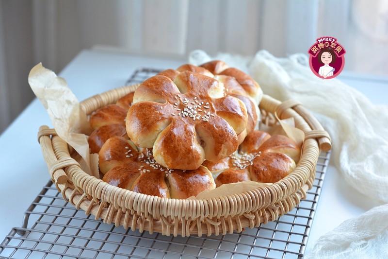 1.这个配方用的直接发酵法,为防止面包老化,尽量在2天之内食用完;2.加入淡奶油是为了使面包更加柔软和醇香;3.加入少量低筋面粉也是为了增加面包的松软度;4.包着芋泥的面团拍得越扁越大,剪出来的花瓣越明显;反之,烤出来的面包近似于小圆面包,且花瓣朴素粘连在一起;5.芋泥的制作:荔浦芋头刮皮后切薄片蒸熟,压成泥与适量白糖、炼乳、淡奶油混合均匀,入不粘炒锅中炒几分钟,去掉多余的水汽,使芋泥的粘性更强;6.烘烤的时间和温度视烤箱的实际情况、面包的大小、喜欢的口感和上色来调整。