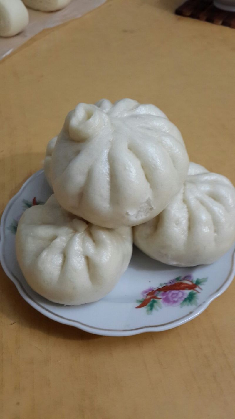 [注意事项1]:①温水酵母水=总的用水量,总的用水量根据具体情况而定,水量不能太多,会粘手。②用面包机和面的时候不用理会面包机功能的预定时间,主要观察面团的变化控制和面时间,个人建议总共10~15分钟。[注意事项2]:面团发酵可以是一步发酵,也可以两步发酵。①一步发酵:发酵面团至两倍大,取出和面挤掉面团中的气泡后直接整形制作;②两步发酵:发酵面团至两倍大,取出和面挤掉气泡后,再次放入盆中加盖发酵第二次,再至两倍大后再和面挤出气泡整形制作,这种方法面团二次发酵后酸味会比较浓,可以用温水化开小苏打,两手沾碱水和面去酸味。[注意事项3]:包好的包子不要马上入锅蒸,静置大概15分钟至20分钟,这样蒸出包子的表皮会光滑细嫩,肉质口感更好。