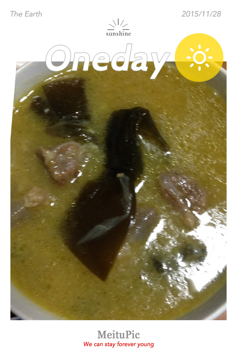 3:海带受热后变成了绿色,上面的褐色还没有浸到热水里;