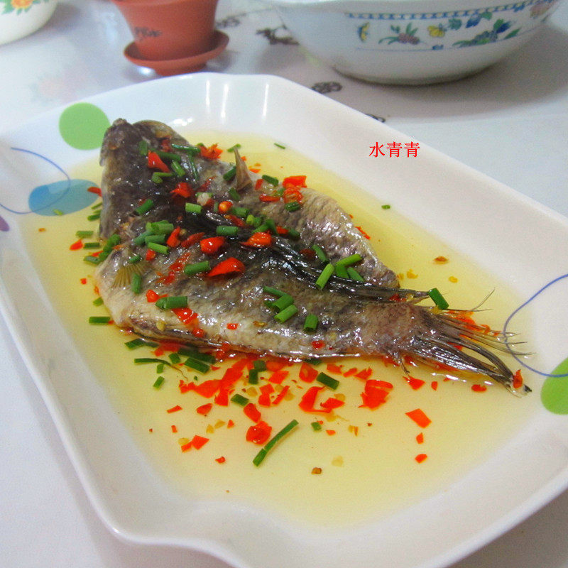 9:烧好的辣椒油浇在蒸好的鱼上即成。