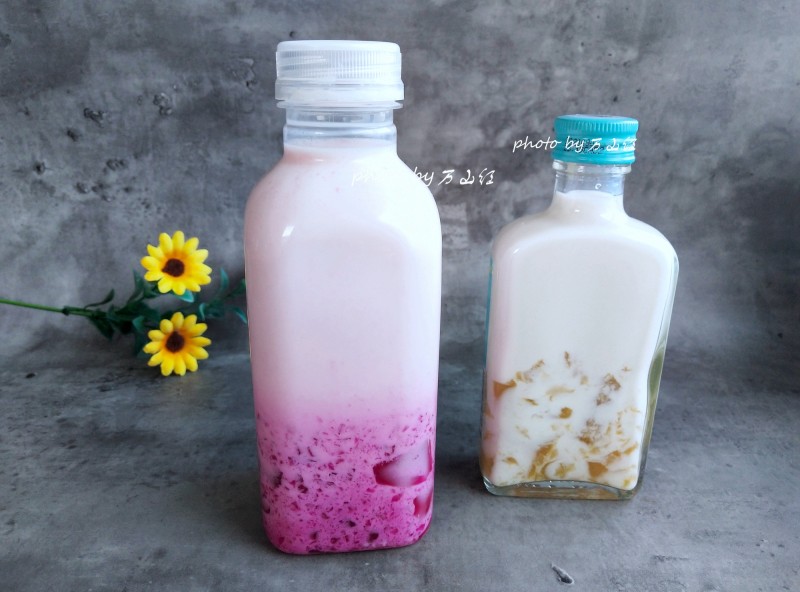 我用的凤梨很甜,是纯汁,所有凤梨冻里没有加糖和蜂蜜。火龙果汁里因加水了,就加了一勺蜂蜜。如果喜欢甜度高的,可以根据自己喜好添加糖或者蜂蜜。也可以在牛奶中也加糖。我家人都喜欢这种原味的,所有没有加糖。