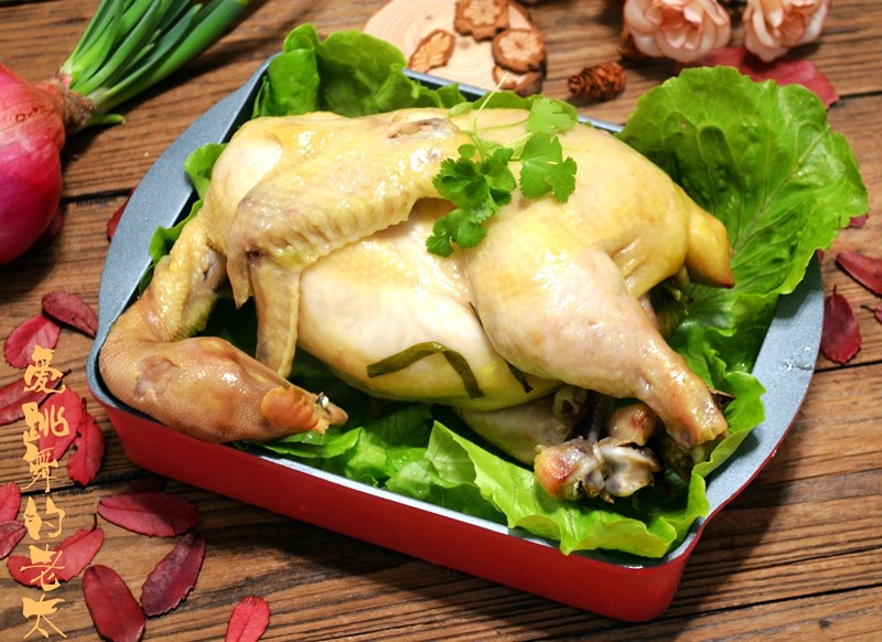 5:撒上葱花和芝麻,一道简单的盐焗鸡就做好了。