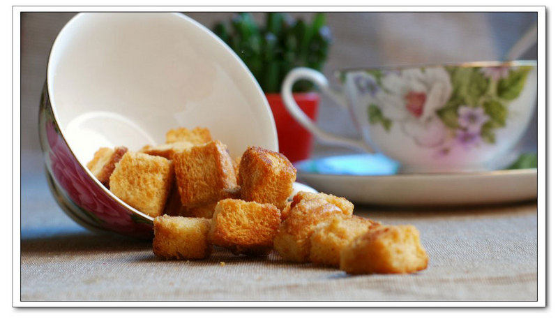 6:烤箱预热至200度,把小面包块烤制3分钟;