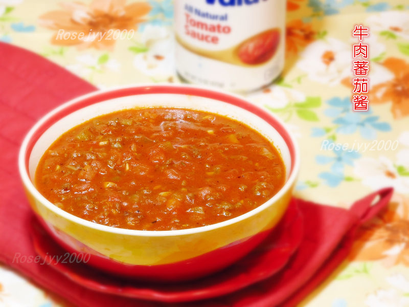 牛肉末约300克;洋葱末约70克;蒜茸约30克;西芹约100克;新鲜蕃茄约250克;蕃茄沙司约220克;蕃茄酱4大勺;