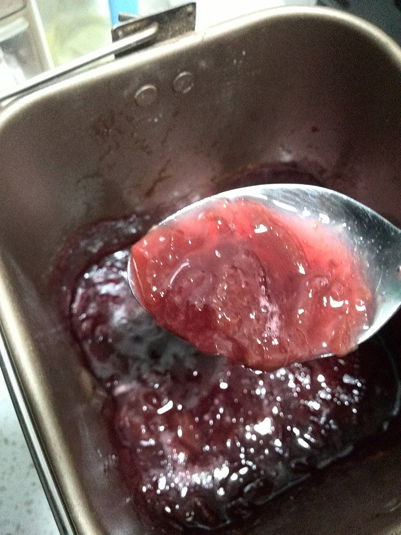 7:放入面包机内,按下果酱模式,我做了两遍果酱模式