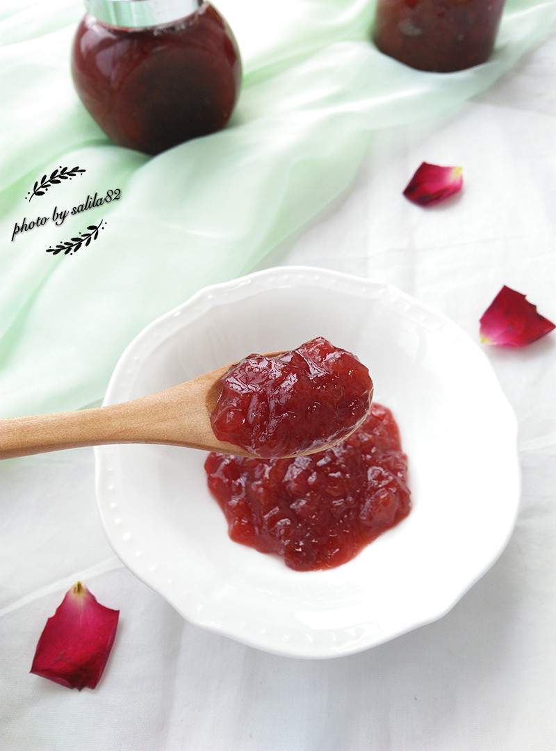 8:煮到汤汁快要收干的程度即可关火,将煮好的果酱趁热装入瓶中,将瓶子倒置一会,晾凉后冷藏。