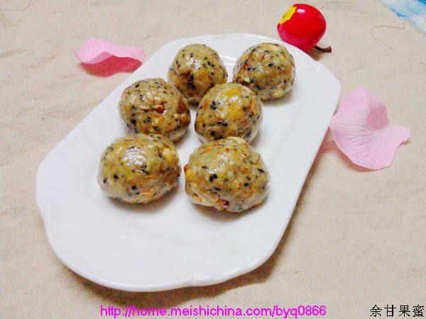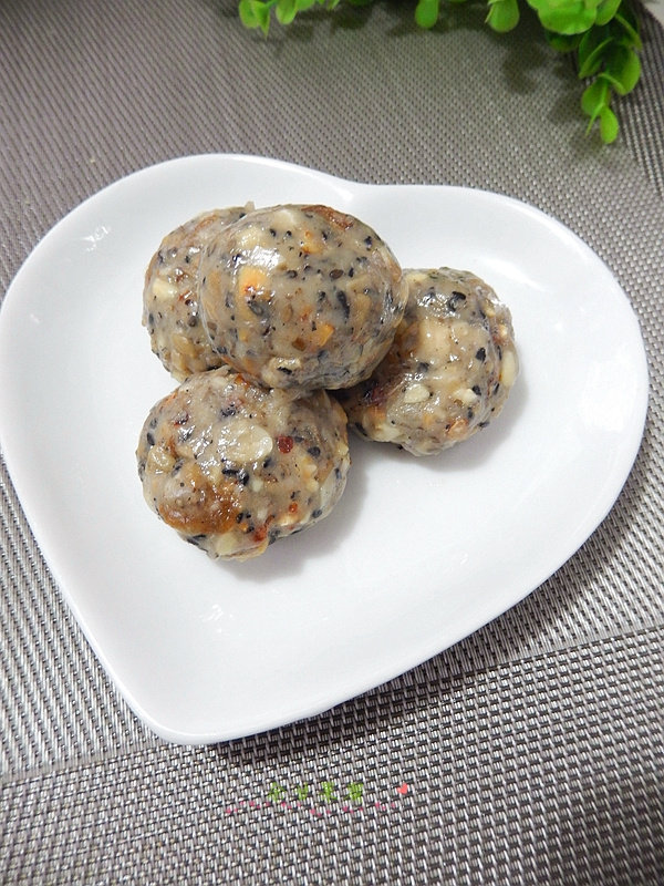 9:取一个小面团放入黑芝麻花生馅包起来。
