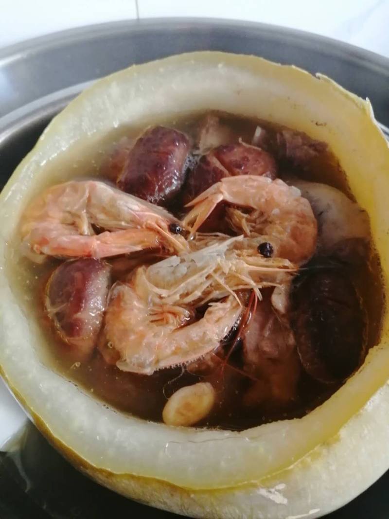 7:冬瓜盅放入蒸锅里,水开后大约蒸5分钟。