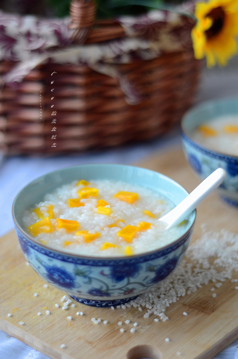 6:煮至南瓜粥粘稠,米粒软烂后关火,焖20分钟。