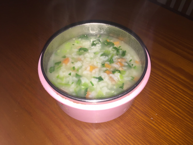 3:加入提前煮好的白粥,在煮2分钟就OK了.也可以加入骨头汤!