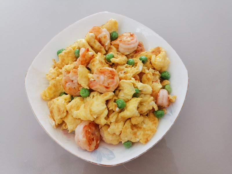 7:炒至蛋液凝固,加入豌豆粒翻炒几下即可。