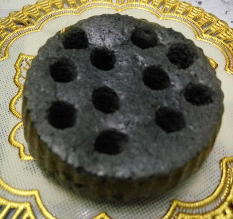 蛋糕粉20g;鸡蛋2只;牛奶20ml;食用竹炭粉2g;糖20g;