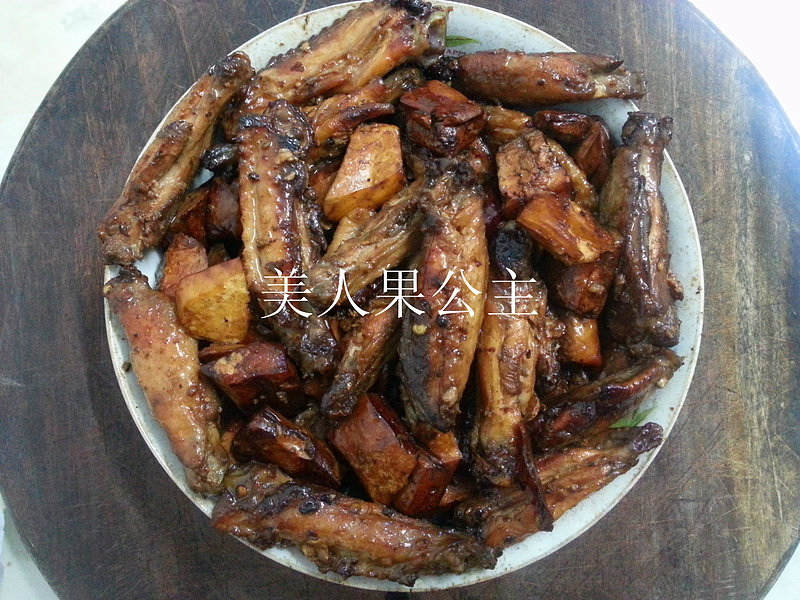 3:锅中留少量油放入冰糖炒至起泡下煎好的翅中入锅烧约十多分钟收汁即可