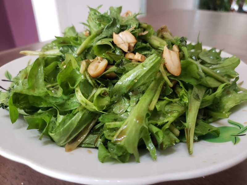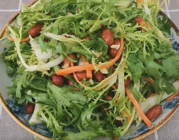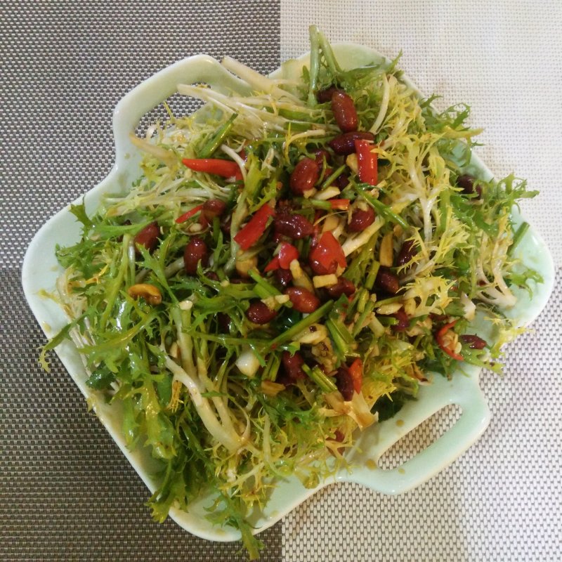 苦菊适量;熟花生米适量;蒜末适量;红杭椒适量;