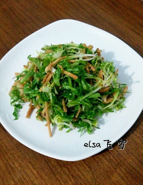 1:苦菊切段放盘子,葱姜蒜切丝加一起,