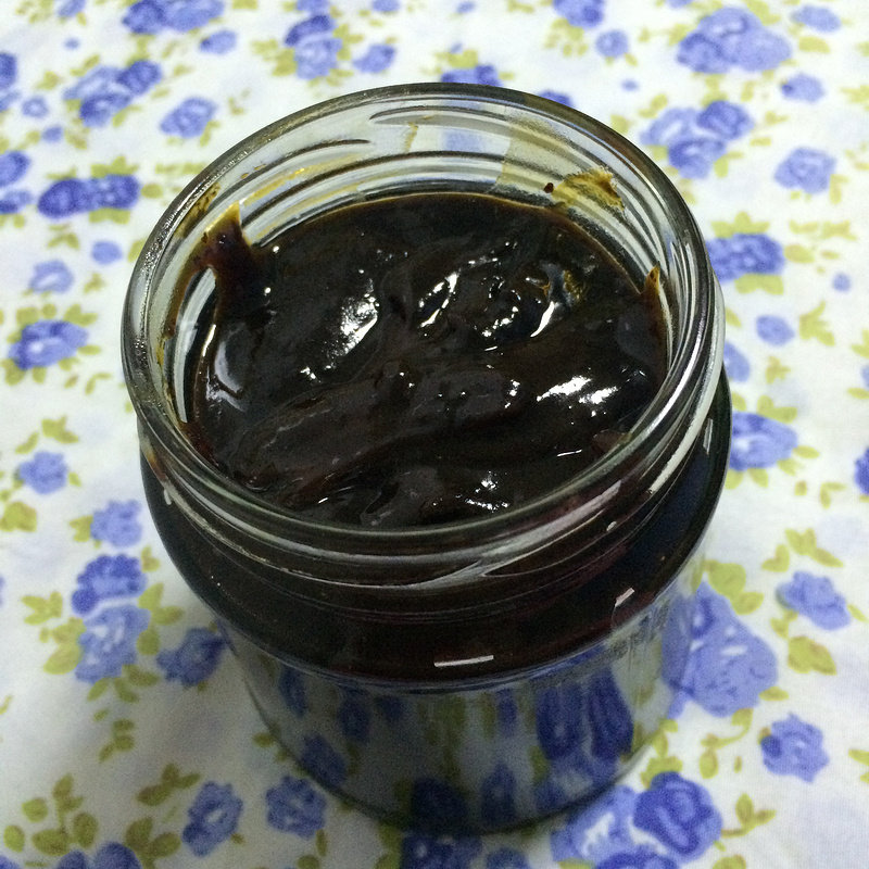 10:略微晾凉红枣膏,趁着膏体比较温热有一定的流动性装入一干净的、无水无油的玻璃瓶中。