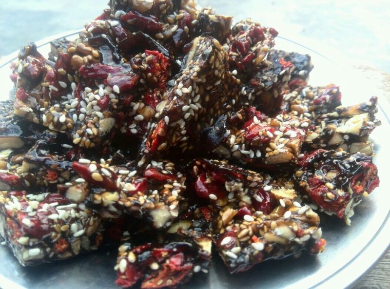 6:倒入准备好的托盘中(可以用烤箱中的托盘代替),平铺压实,根据自己的要求切块切片