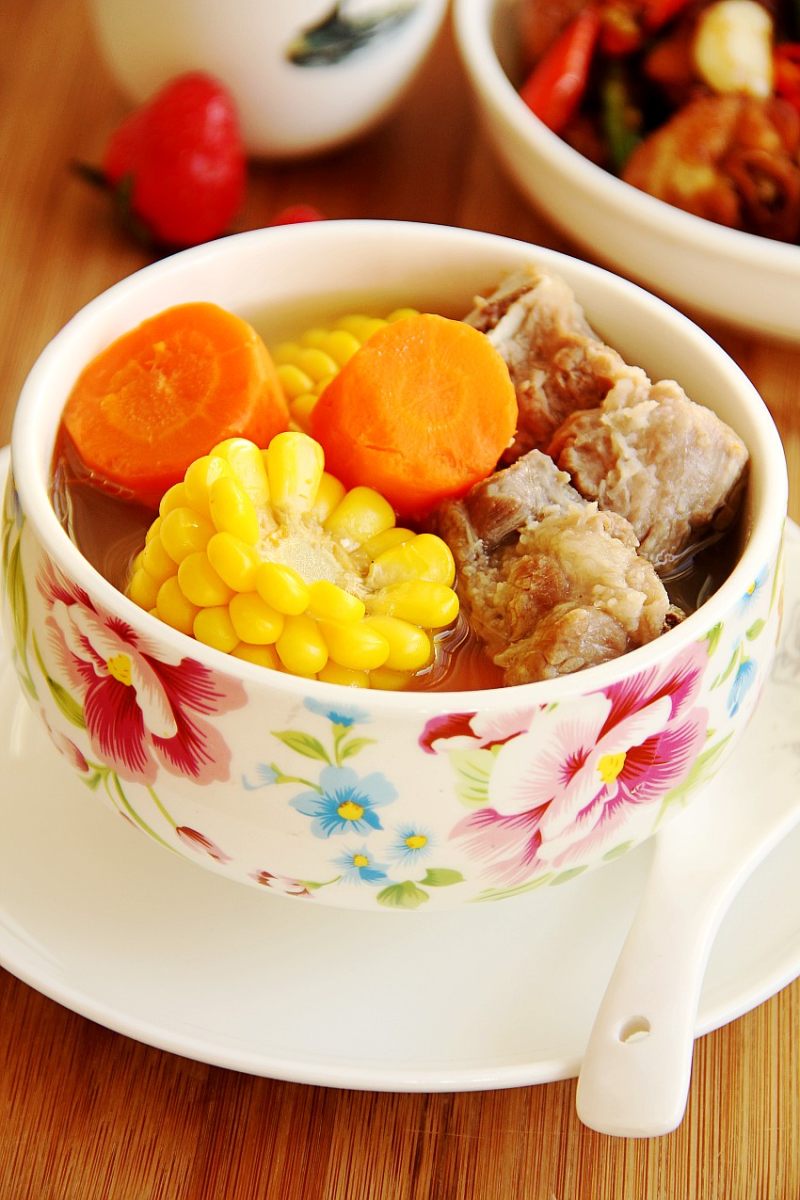 6:放入胡萝卜,玉米后再煮三十分钟,加入盐即可食用