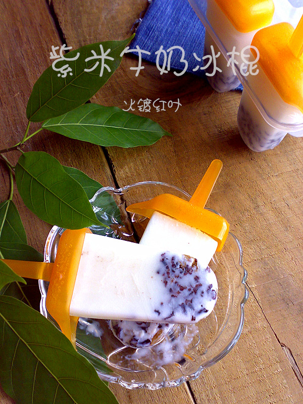 6:把牛奶糊倒在放了紫米葡萄馅的冰棍模里