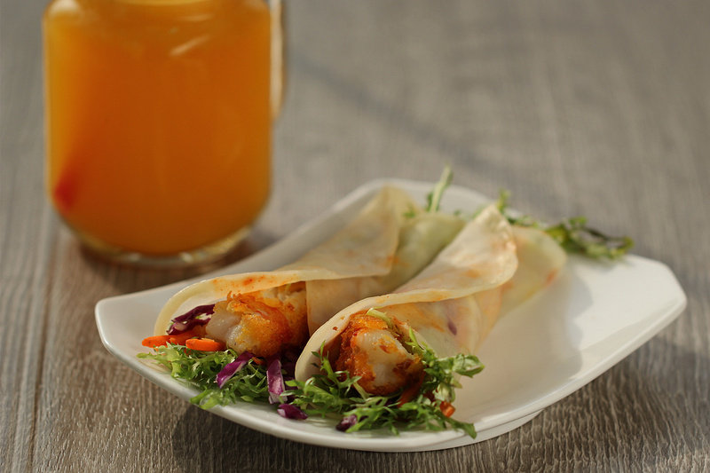 1.春饼皮用的是烫面,揉好后饧上20分钟,再擀成非常薄的圆片,用模具按压成大小一致的面皮;当然也可以直接下剂子,如同擀饺子皮一样擀面片;2.面饼即可蒸也可以烙,蒸的不仅薄些口感好,而且更省事,所以我选择蒸的;注意蒸时将面饼叠放一起时每一片都要刷层油防止粘连;3.鲜虾去壳去头,清洁干净后用纸巾去除水分,再加入调味料腌制;腌制好后先裹蛋液再裹面包糠下油锅炸至金黄;4.包裹的蔬菜尽量选择颜色丰富,生吃即可的蔬菜,这样更健康;再放上炸好的大虾;最后挤上自己喜欢的调味,番茄酱、沙拉酱等等即可。