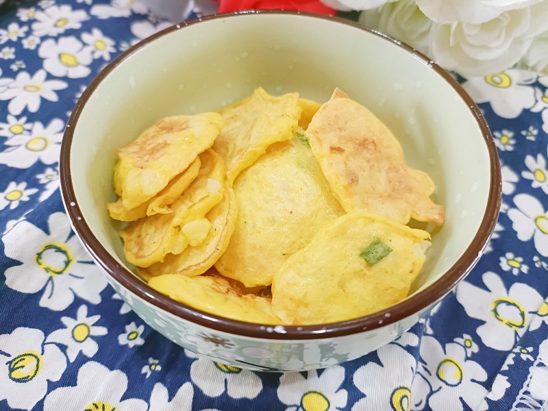 7:弄一点面粉~用水调均~在锅子里舀上一勺鱼虾泥之后用勺子敲平变成饼状~然后藕片粘上少许面粉贴在鱼虾饼上~两面煎黄即可出锅