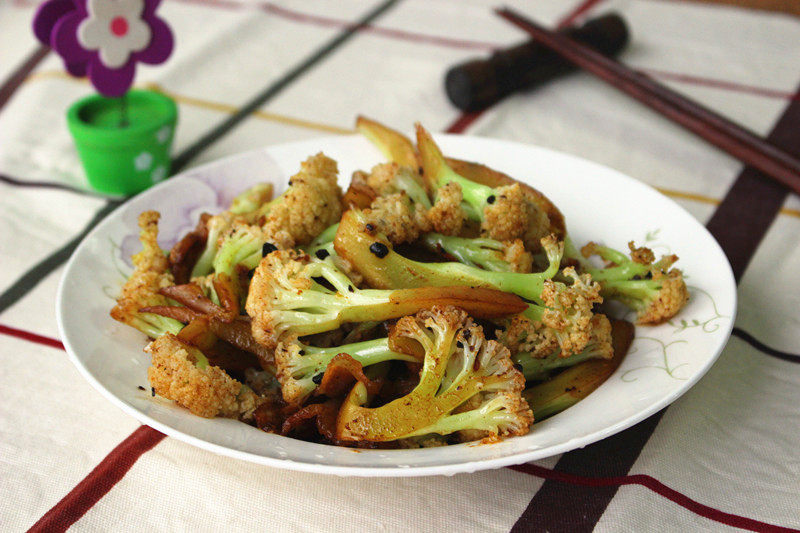 菜花炒出来的口感是脆脆的,如果想要软一点,可以提前将菜花焯水,沥干水分再炒。油豆豉的做法:豆豉切碎,加入姜末,花椒粉,放入油里熬出香味,密封保存,拌凉菜,炒菜都好吃。腊肉最好用肥一点,如果肉太咸,可以提前泡水去掉一些咸味。