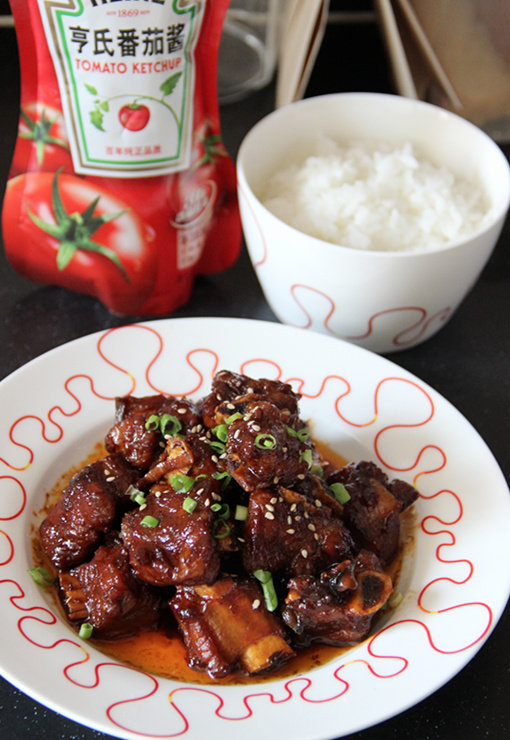 排骨也可以选择先过油炸制,口感会更香脆收汁过程中加少许冰糖可以让排骨更好的上色