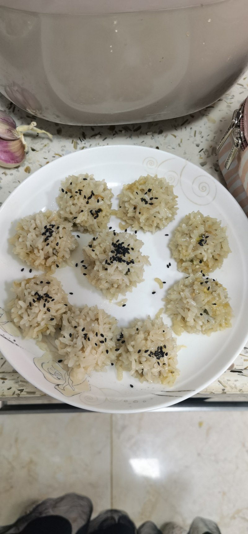 6:出锅放入黑芝麻点缀,也可以放入香葱和泡发好的枸杞点缀。